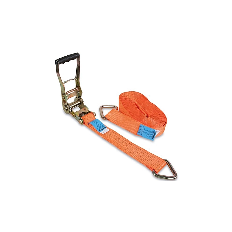 Nastro in poliestere carico di lavoro Kg 2000, con tenditore a cricchetto e terminali di fissaggio triangolari. Lunghezza 9 mt. Conf. da 1 pz.