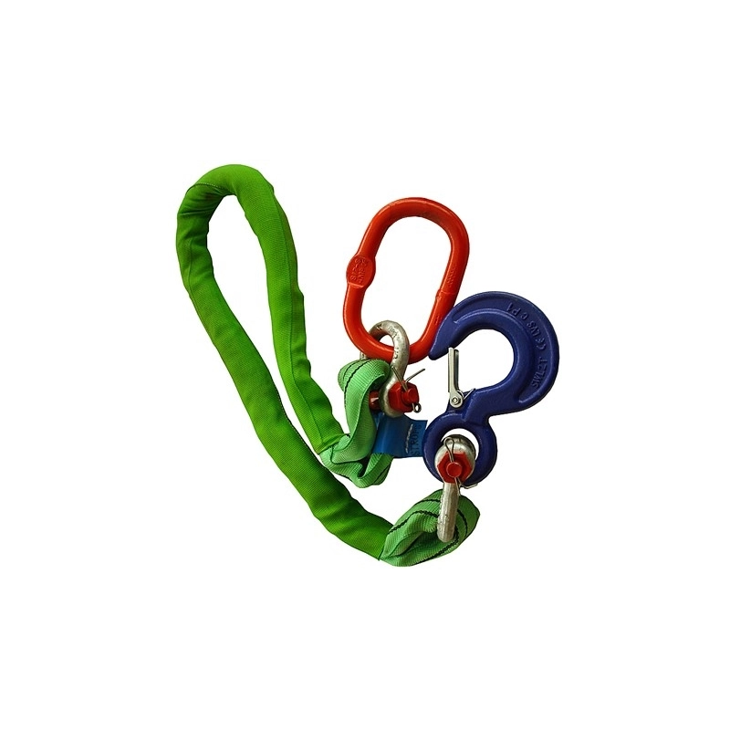 Pendente ad 1 braccio in poliestere con guaina protettiva, 1 anello ovale OV, 1 grillo GP, 1 gancio GKN clevis. Lunghezza m 1. Portata ton. 2
