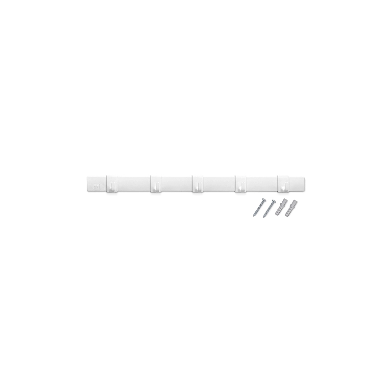 Tavoletta a 5 posti con ganci scorrevoli. Colore bianco. Dimensioni 350x28 mm.
