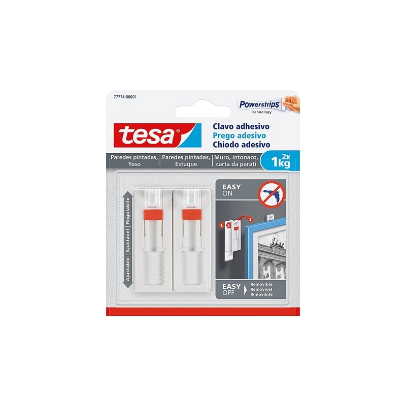 Chiodo adesivo regolabile per carta da parati ed intonaco. Colore bianco. Tenuto massima 1 kg. In blister da 2 pz.