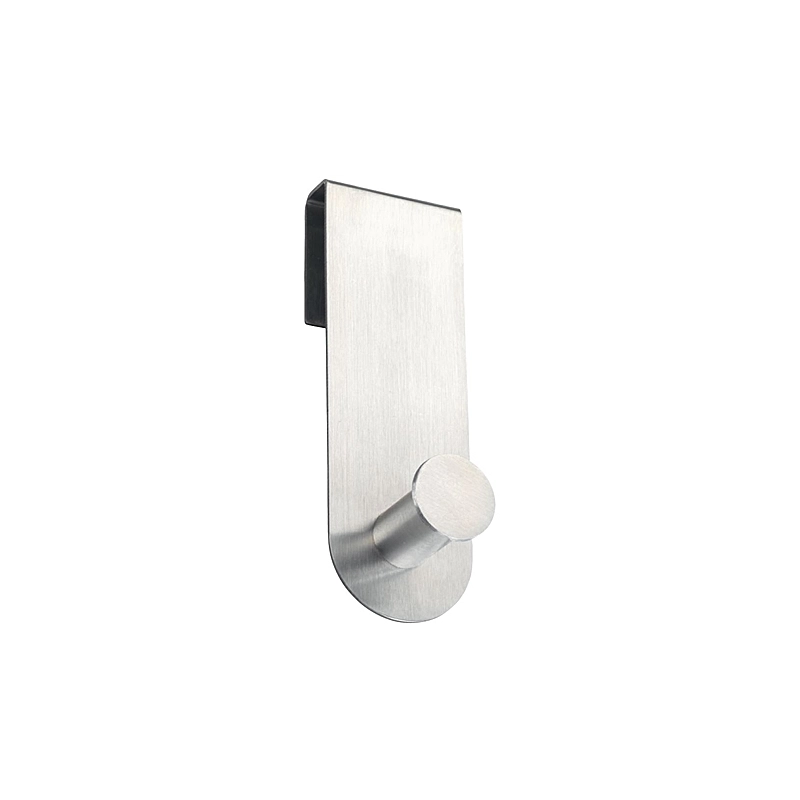 Gancio per doccia in acciaio inox. Rivestimento antigraffio sul retro. Dimensioni 4x5x12,5 cm. Per spessore da 6 a 10 mm.