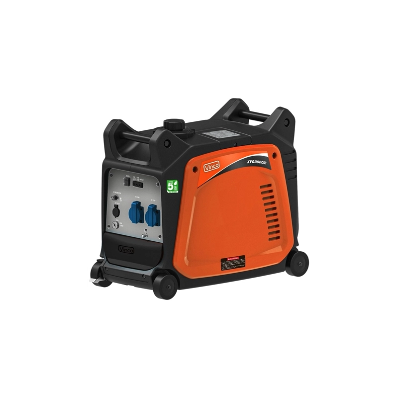 Generatore silenziato con motore 4 tempi monofase. 230V. Potenza massima in uscita 3,5 Kw. Carburante:benzina. Avviamento elettrico. Serbatoio da 7,5 l. Con maniglia e ruote per facilitarne gli spostamenti. Dimensioni 635x360x530 mm. Peso 33,5 kg.