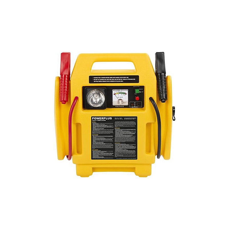 Avviatore con lampada emergenza da 3,6W e minicompressore. Potenza max. 900AMP. Avviatore fino a un massimo di cilindrata di 1600 cc. Potenza batteria 12V. Con accessori per il gonfiaggio.