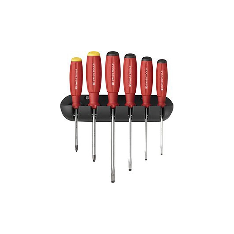 Assortimento di giraviti misti con supporto a parete, serie 6 pezzi, 4 pezzi taglio (1, 2, 3, 4) + 2 pezzi PH (1, 2)
