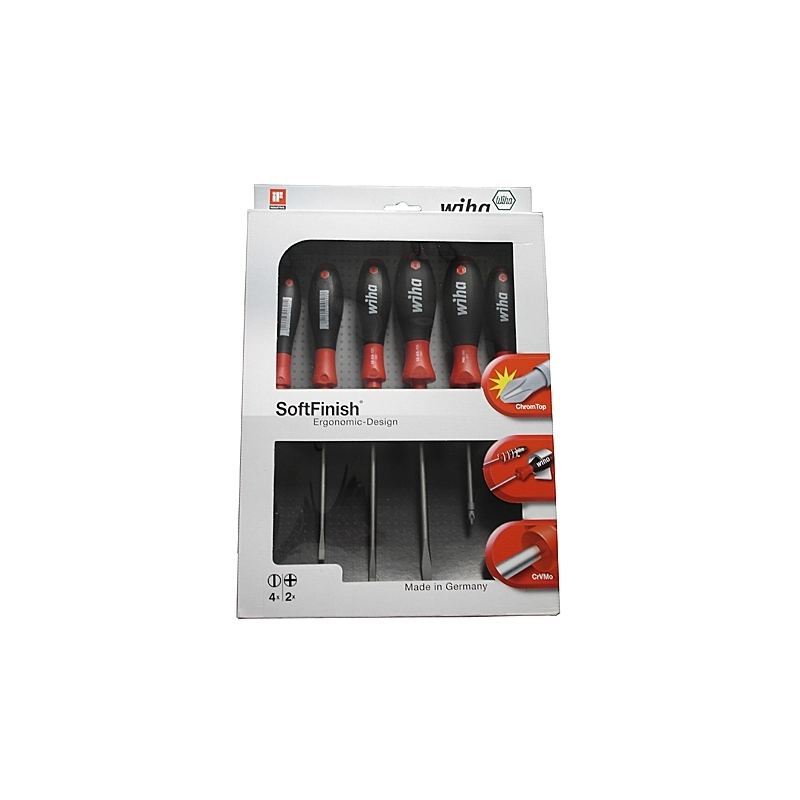 Serie di 5 cacciaviti in acciaio al cromo-vanadio-molibdeno a taglio e croce PH. Taglio misure mm. 3x80 - 4x100 - 6,5x150. Croce misure mm. PH1x80 - PH2x100