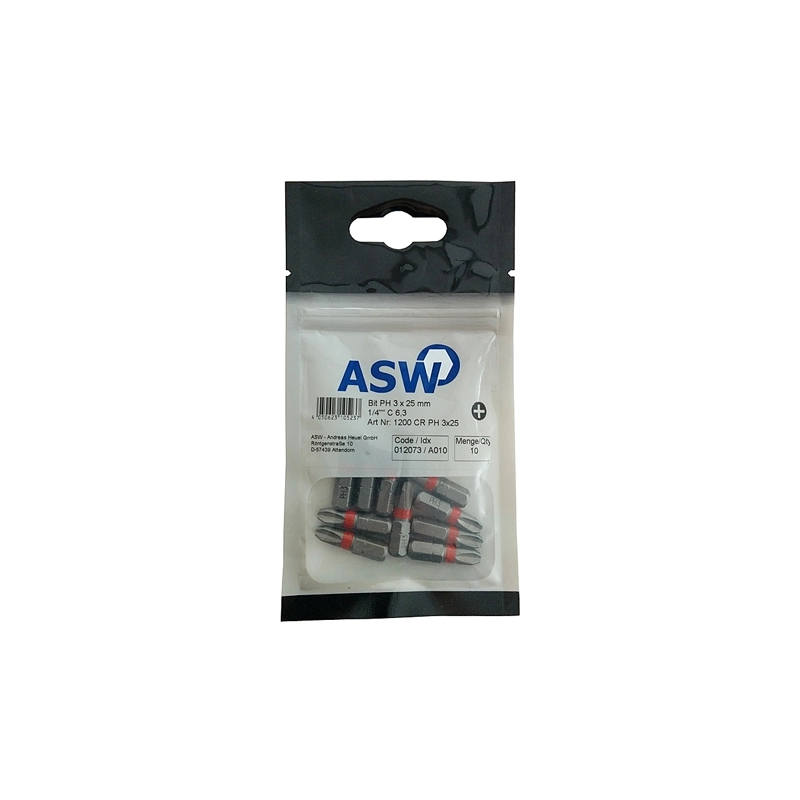 Bits da 1/4' impronta croce PH, in acciaio antistrappo. Lunghezza mm 25. Finitura lucida con anello colorato. Modello = misura
