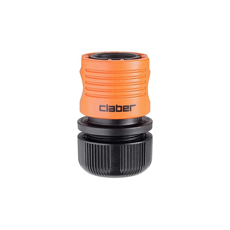 Raccordo quick-click per un collegamento rapido. Molla interna brevettata da Claber estremamente resistente e durevole. Modello = confezione