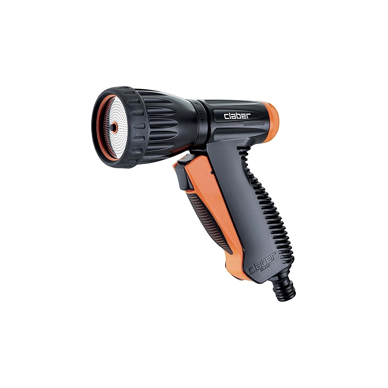 Pistola con getto e portata regolabili. 4 getti. Basta ruotare la ghiera in gomma per scegliere tra 4 tipi di getti d'acqua. Protezione antiurto. In blister.