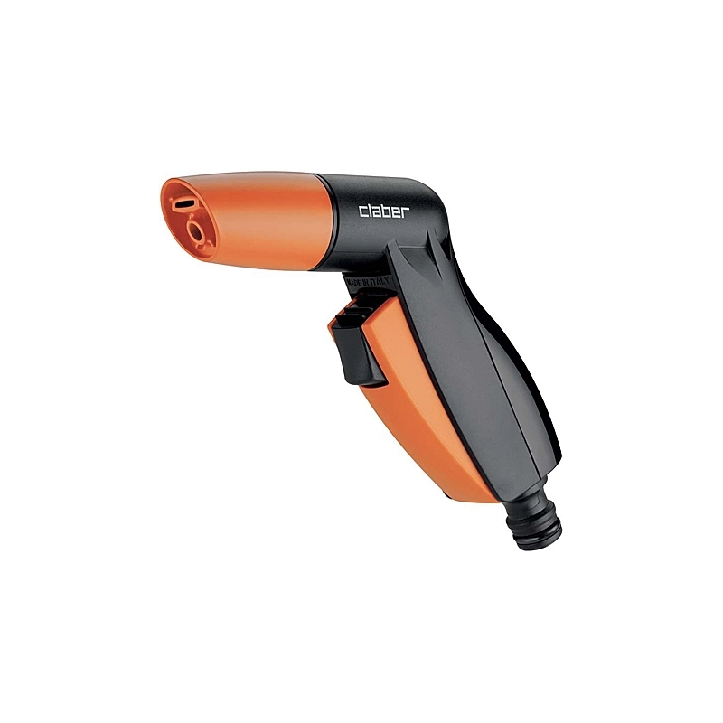 Pistola con getto e portata regolabili. Dotata di 2 diversi getti diversi, concentrato o piatto, selezionabili ruotando il cappuccio anteriore. In blister.