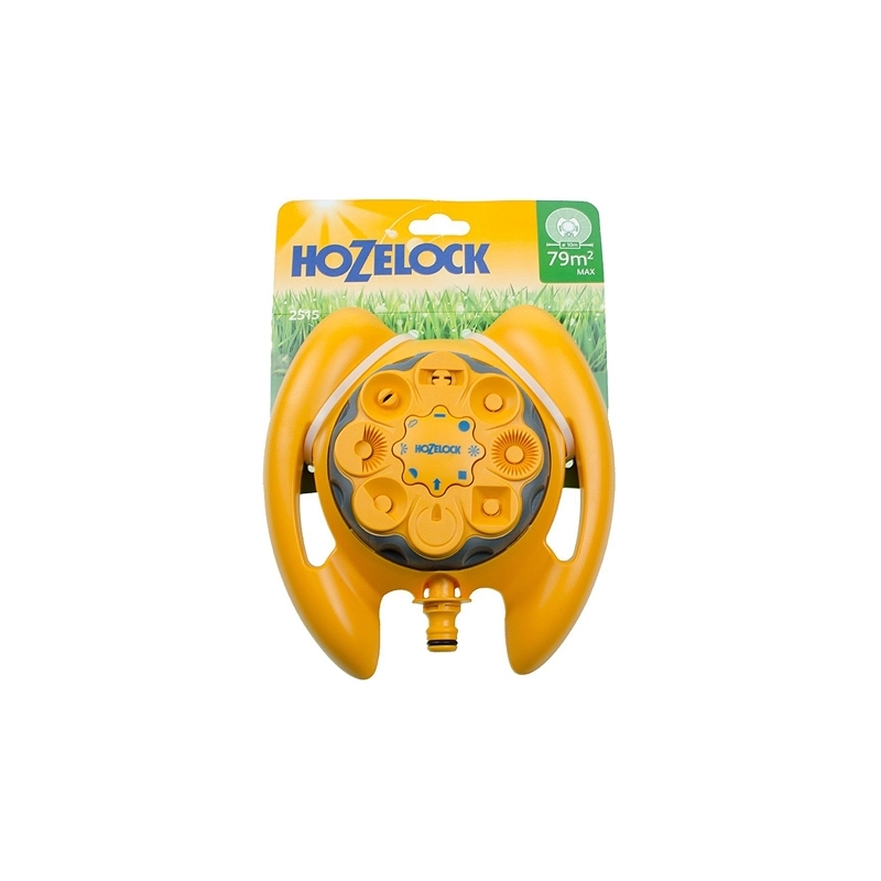 Irrigatore con 8 modalita' di spruzzo tra cui: piccolo semicerchio, grande semicerchio, nebulizzazione, strisce, quadrati e getto a distanza. Completo di manopola soft-touch. Copertura massima 79 m2 (diametro massimo 10 m). Montato su una base a slitta per tutte le superfici.
