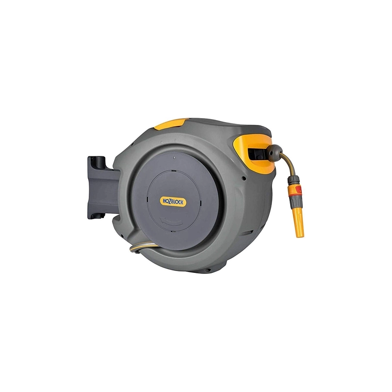 Avvolgitubo da muro con riavvolgimento automatico. In dotazione: lancia, raccordi e minuteria per il fissaggio a muro. Modello = lunghezza tubo mt