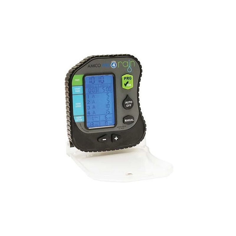 Centralina in ABS con coperchio di chiusura. Schermo retroilluminato. Tenuta stagna IP68. Tempi di irrigazione da 1 a 240 minuti. Massimo 4 partenze giornaliere. Minimo 1 partenza ogni 15 giorni. Segnale batterie scariche. Porta centralina adatto per pozzetti "EzOPEN". Alimentata con 2 batterie alkaline 1,5 V (AA). Modello = numero stazioni