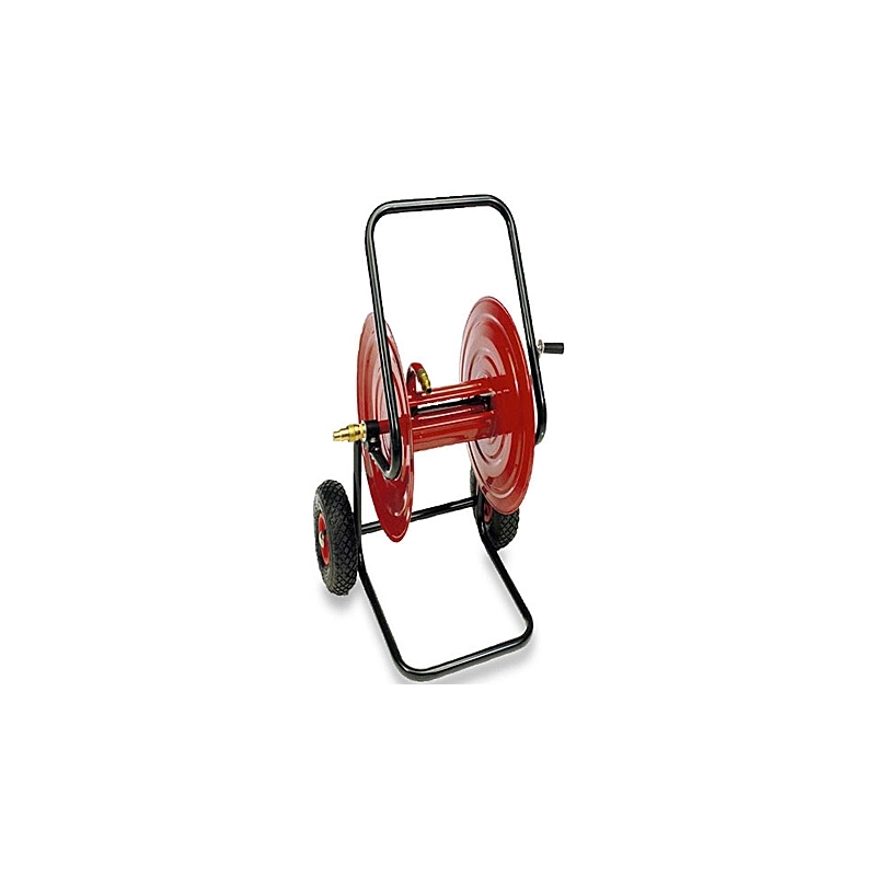 Carrello avvolgitubo in metallo verniciato con polveri epossidiche con raccordi in ottone. Ruote pneumatiche. Capacita' 60 mt da 3/4' o 30 mt da 1'. Made in Italy.