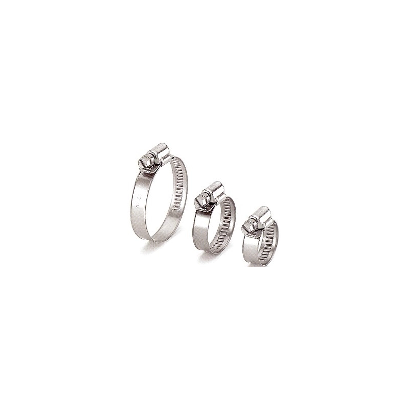 Anello in acciaio inox (AISI 430). Bordi rialzati, arrotondati. Vite chiave mm.7, taglio a lama in acciaio zincato. Cassetto in acciaio legato e nichelato. Nastro mm.12. Modello = diametro mm (min-max)