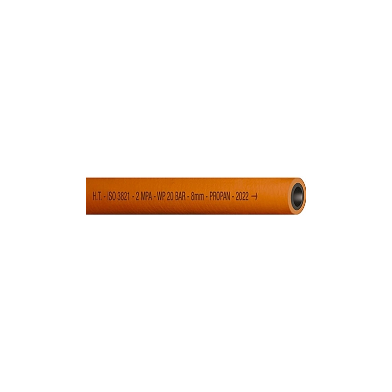 Tubo multistrato in gomma a norma ISO3821 (EN559) per gas. Struttura a 3 strati in NBR e EPDM con rinforzo in fibra tessile. Resistenza allo scoppio 60 bar. Resistente alla temperatura -30 +70. Diametro mm 8x15. Rotoli da m 100. Certificato per utilizzo professionale con cannelli a gas.