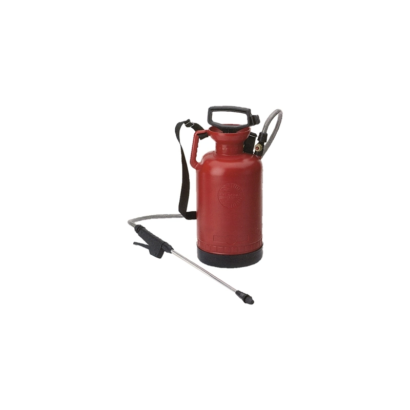 Pompa a precompressione con serbatoio da l 6. Dotata di maniglia e tracolla per il trasporto, di lancia regolabile e di valvola di sicurezza