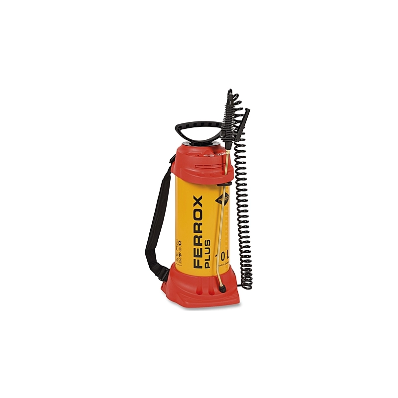Serbatoio in acciaio rivestito in poliestere resistente agli agenti chimici. Pressione di esercizio: 6 bar. Con lancia in ottone, manometro, valvola di sicurezza. Made in Germany. Capacita' lt 10 (volume totale lt 12,5). Peso kg 5,5.