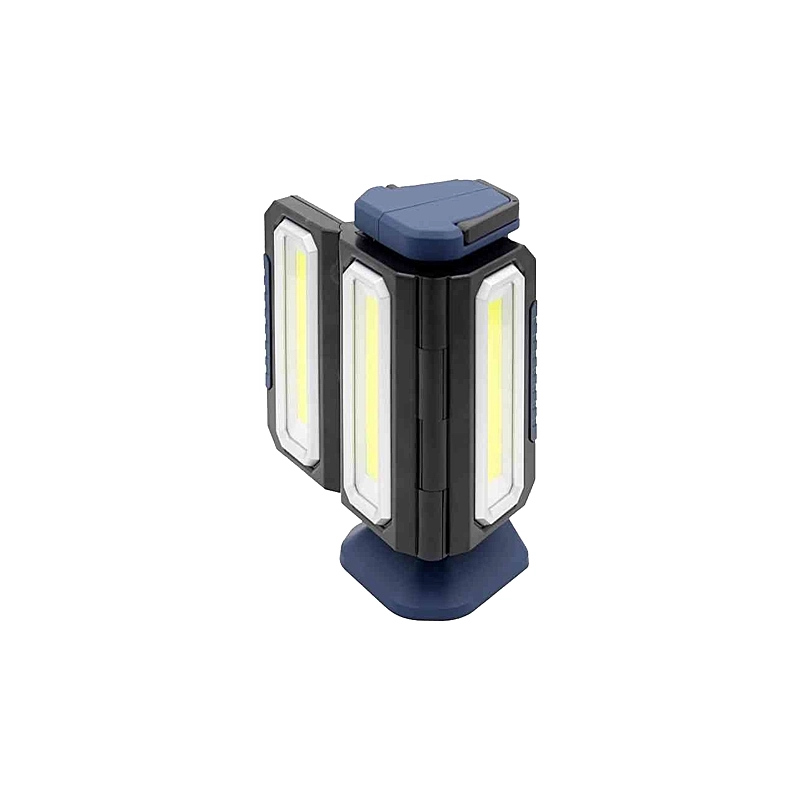 Faro in ABS a Led COB. 3 tipi di luminosita' (1500/1200/700 lumen). Autonomia fino a 8 ore con luminosita' minima. IPX4. 21 Watt. Batteria al litio 4000 mAh. Direzionabile su 3 lati. Puo' funzionare anche come powerbank. 6500 K. Dimensioni 9,5x9x19 cm. Peso 560 gr.