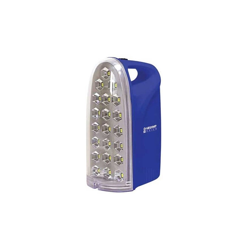 Lampada portatile ricaricabile 220 V. Autonomia 100% 2,5 ore, 50% 5 ore. Tecnologia 21 LED. Dimensioni 126x76x190 mm. In dotazione adattatore 12 V. Accensione automatica in mancanza di tensione.