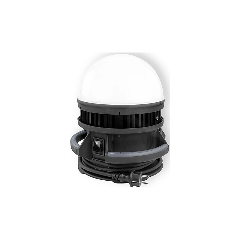 Faro a Led SMD a sfera con 5 mt di cavo. 100 Watt. 220-240V. 11500 lumen, angolo di diffusione di 360 gradi. Diffusione della luce senza abbagliamento. Fornita di gancio di fissaggio e adattatore per treppiede. Presa aggiuntiva per il collegamento di altre sorgenti luminose o elettroutensili. Resistente agli urti. IP54. Dimensioni 28x8x32,3 cm.