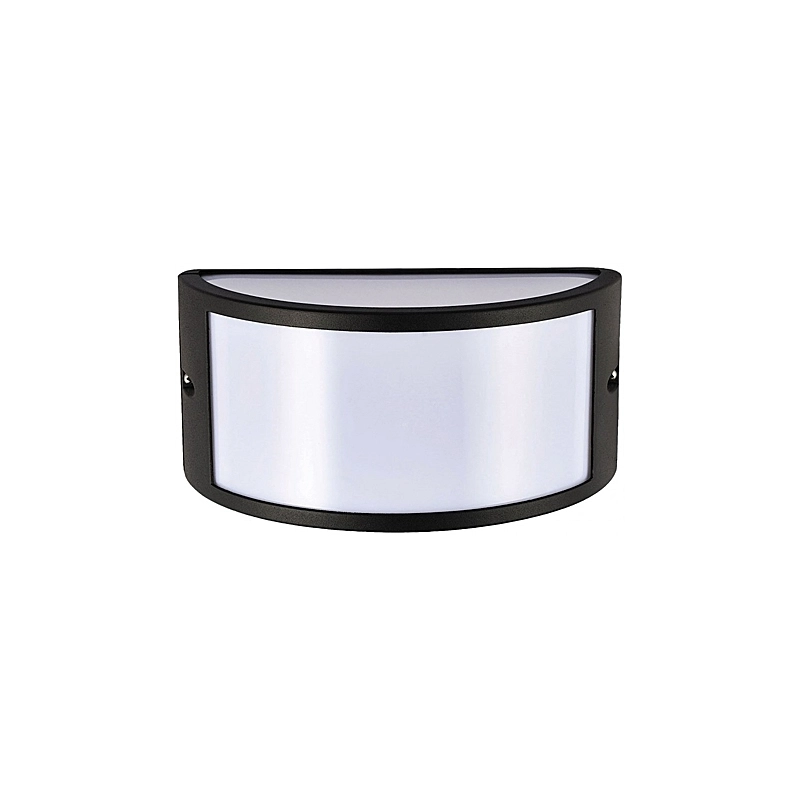 Lampada a mezzaluna in alluminio e ABS con attacco E27. Design moderno. Compatibile con lampadine Led. Per esterni (IP54). Colore antracite. Ideale per balconi, terrazzi e cortili. Dimensioni 250x125x120 mm.