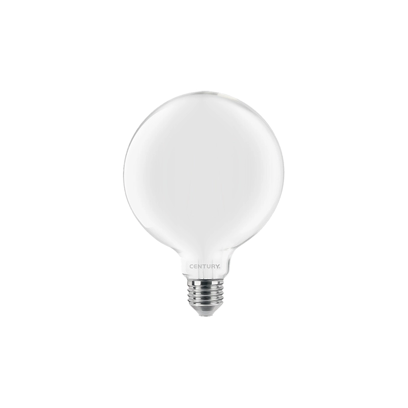 Lampade a LED a filamento, alternativa alle tradizionali lampade a incandescenza. 10 W. 1055 Lumen. Durata media fino a 25.000 ore con un riparmio di energia fino al 90%. Attacco E27. 230 V, 50-60 Hz. Diametro 125 mm. Luce calda 3000 K. Peso 97 gr