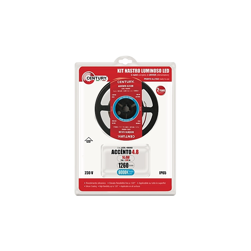 Striscia led da 3 m. 4,8 Watt. Comprensivo di alimentatore. Modello = tipo luce/Lumen
