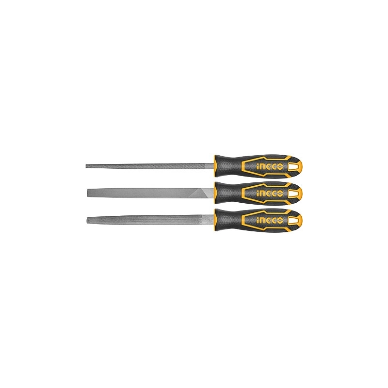 Set di lime per acciaio da 200 mm. Tipo piatta, mezza tonda e tonda.