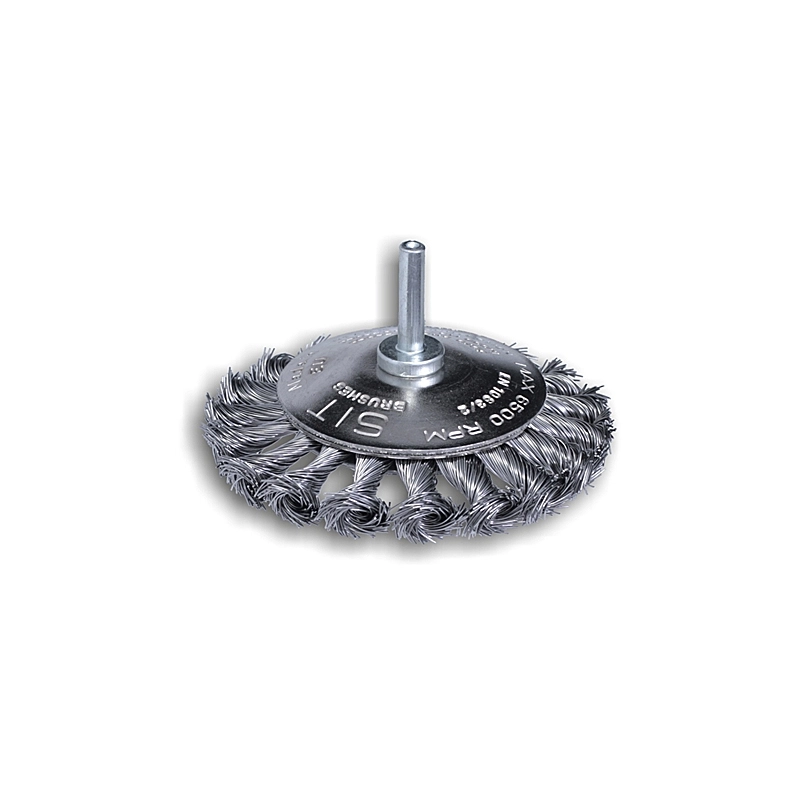 Spazzola circolare con gambo in acciaio a mazzetti ritorti che ne fanno una spazzola aggressiva per rimuovere scorie, ruggine e residui. Con 15 mazzetti. Codolo mm 6x25. Rotazione max 6500 giri/min. Modello = diametro mm