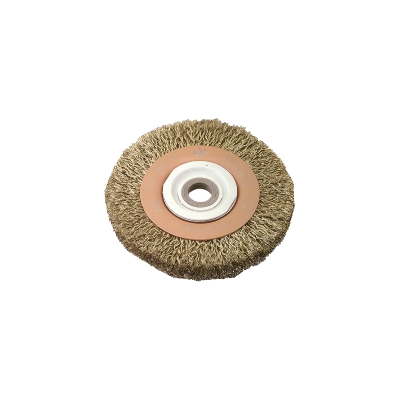 A filo arricciato in trefoli che garantisce maggiore durata e flessibilita nelle condizioni d'uso piu' gravose. Diametro mm 150. Spessore mm 20. Rotazione massima 6500 giri/min. Con attacco multiforo con diametro mm 13,16,20,22, 26,30,50.