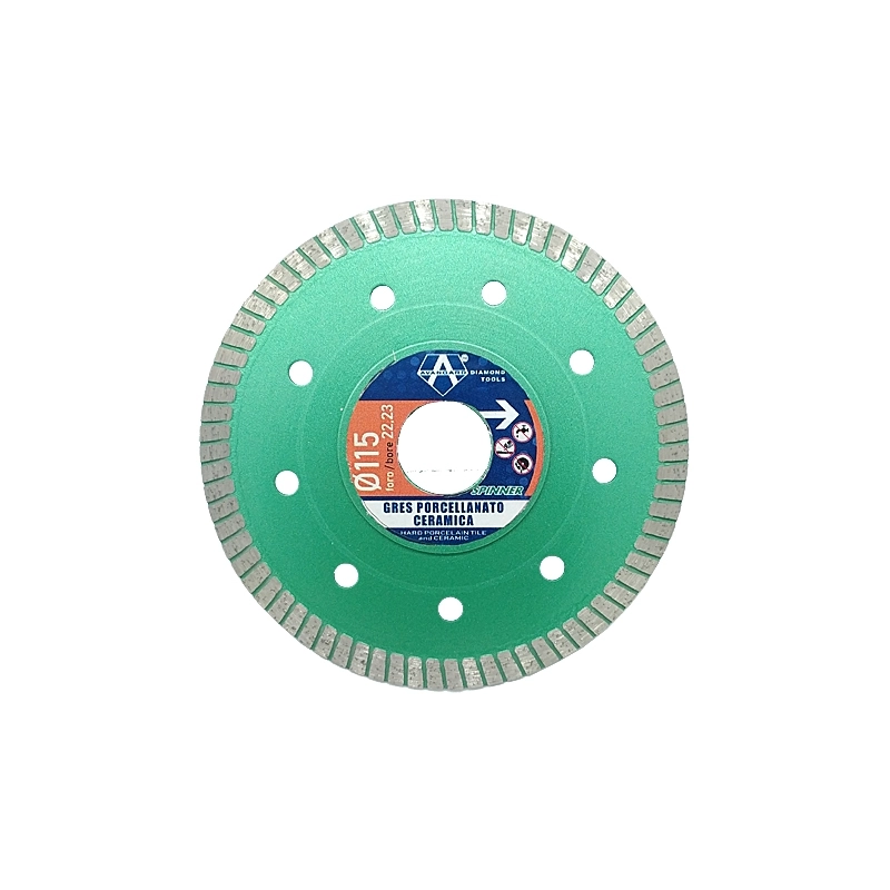 Disco professionale ad alte prestazioni. Ideale per Gres porcellanato e ceramica. Adatto anche per Klinker, cotto e marmo. Foro da 22,2 mm. Diametro 115 mm. Altezza corona 7 mm. Spessore 1,5 mm.