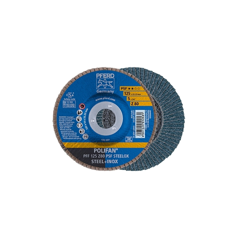 Disco lamellare POLIFAN con supporto in fibra estremamente aggressivo e di ottima durata. Per la lavorazione di acciaio e acciaio INOX. Dimensioni 115x22 mm. Modello = grana