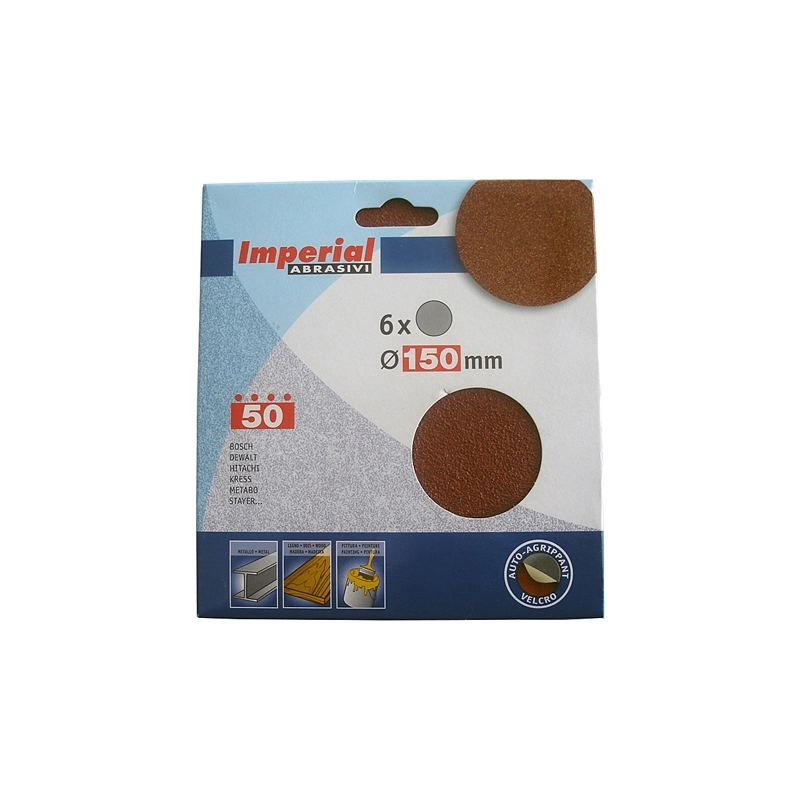 Dischi velcrati non forati. In confezione blister da 6 pezzi. Diametro 150 mm. Modello = grana