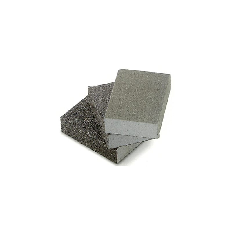 Spugne sintetiche ricoperte di abrasivo ideali per levigare bordi, angoli e scanalature. Modello = grana