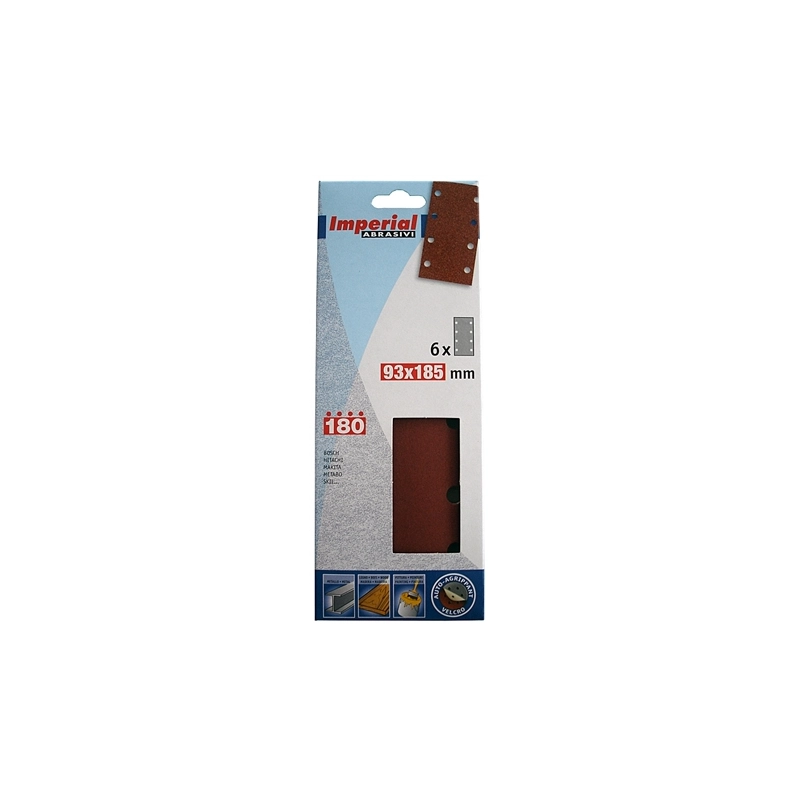 Foglio velcrato con 8 fori. Utlizzo universale. In confezione blister da 6 pezzi. Dimensioni 93x185 mm. Modello = grana