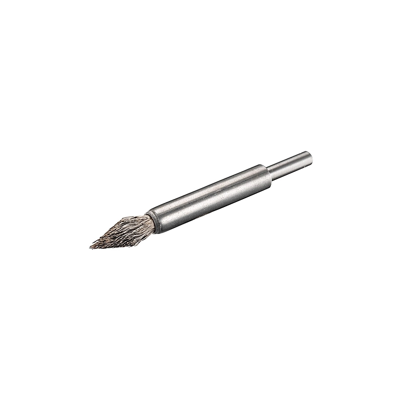 Spazzola a pennello inox con punta da 30 gradi. Modello professionale con filo da 0,3 mm. Studiate per rotazioni fino a 20.000 giri/min. Diametro 10 mm. Indicata per lavori di precisione.