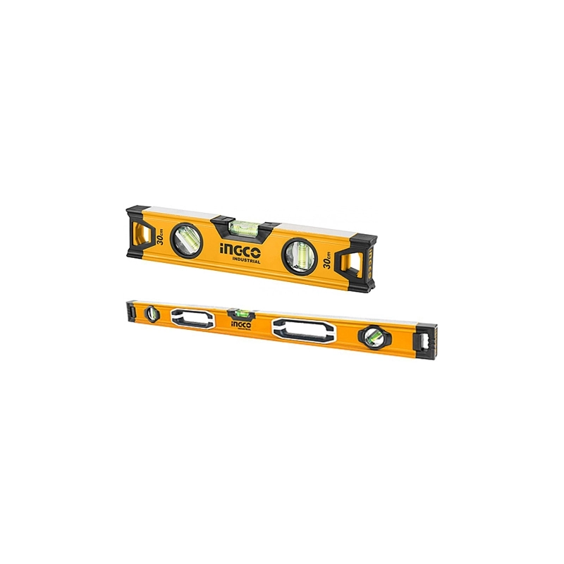 Livelli con doppio lato rettificato. 3 bolle di precisione 0,5 mm/m. Spessore alluminio 1,5 mm. Scanalatura a V per misurazione oggetti a forma tonda. Dalla misura 80 cm con 2 impugnature. Modello = lunghezza cm