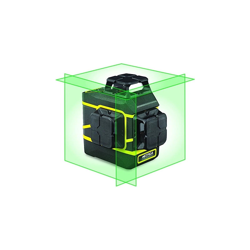 Proietta 3 piani laser a 360 gradi: un piano orizzontale e due piani verticali. Fornito con telecomando, supporto magnetico a parete, girevole, bersaglio e custodia. Doppio attacco per treppiedi: 3/8" e 1/4". Precisione 1,5 mm/5 mt. Portata 30/50 mt. 505/550 nm. Classe II. IP54. 2 Batterie ricaricabili al litio 7,4V 2600 mAh tramite cavetto USB in dotazione. Dimensione 120x115x80 mm. Peso 540 gr.
