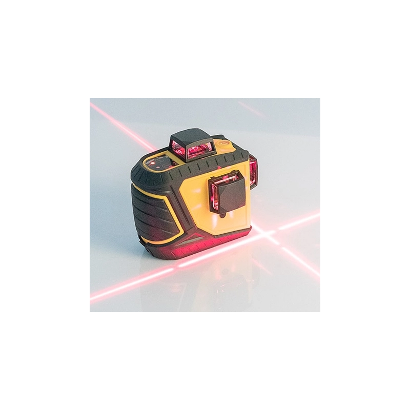 Laser autolivellante. Genera 3 linee a 360 gradi (1 orizzontale e 2 verticali a sqaudro). Piombo inferiore esterno allo strumento per allineamenti filo-muro. Accessorio non incluso: il ricevitore acustico per lavorare in esterno. Doppio attacco per treppiedi: 5/8" e 1/4". Precisione 1,5 mm/5 mt. Portata con ricevitore acustico 80 mt. Batteria ricaricabile e alcaline AA in dotazione. Valigia rigida