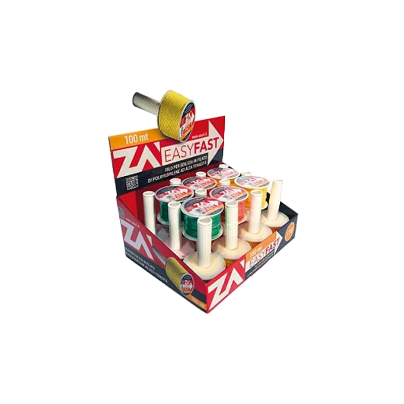 Espositore composto da: 6 pz filo giallo 1,8x100 mt, 6 pz filo arancio 1,8x100 mt e 6 pz filo verde 1,8x100 mt