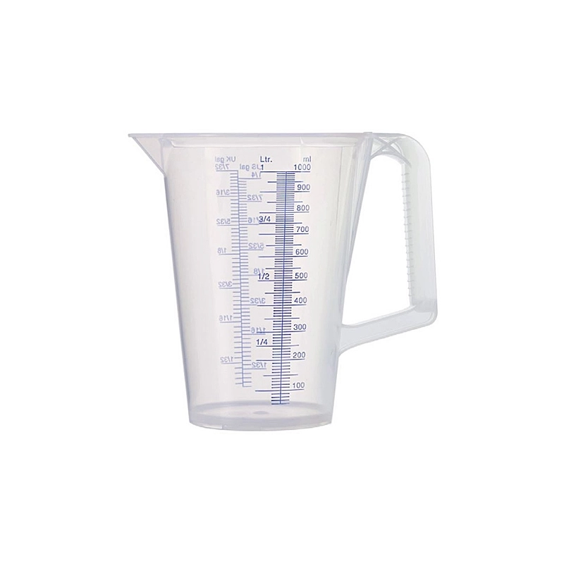 Stabili ed infrangibili, resistenti ad oli e acidi leggeri. Bordo con rialzo di sicurezza. Scala in rilievo. Modello = capacita' ml