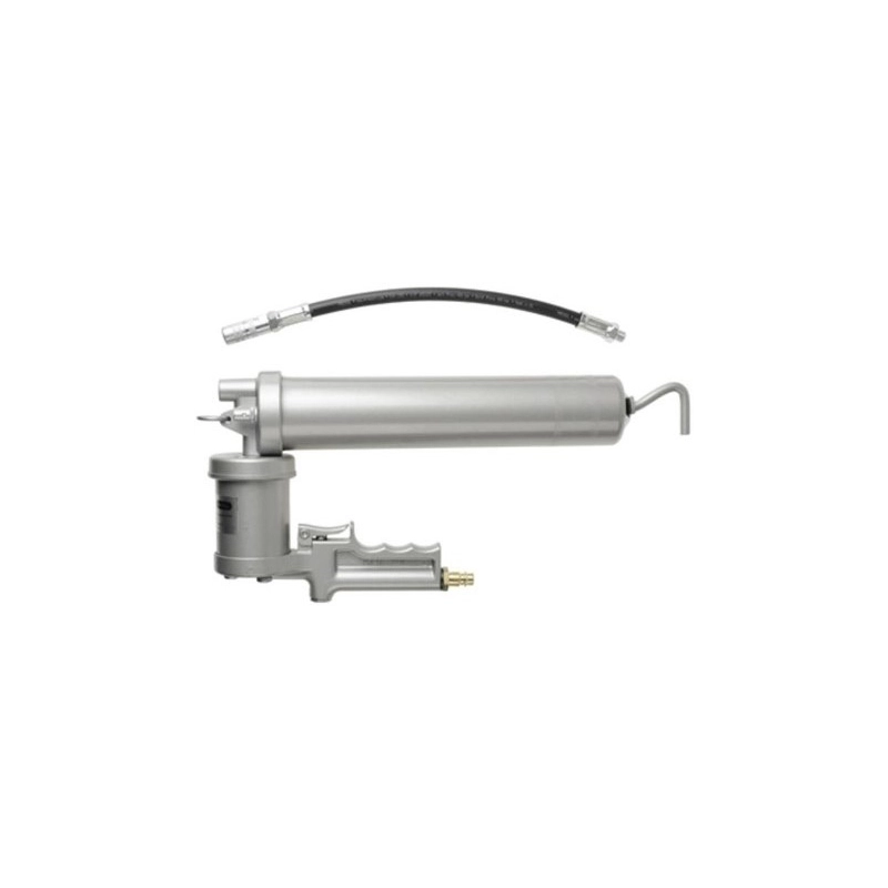 Dotato di tubetto flessibile mm 11 x 300. Testina idraulica a 4 griffe, raccordo di riempimento e gancio ad appendere. Pressione aria consigliata 2 - 8 bar. Contenuto cm3 500
