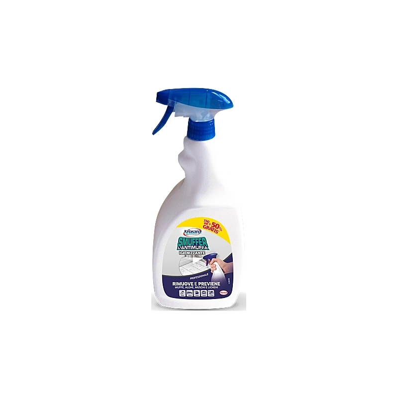 Antimuffa. Flacone con spruzzatore pronto all'uso. Rimuove in pochi minuti muffe, alghe e muschi sia dagli ambienti interni che esterni. Contenuto ml 375