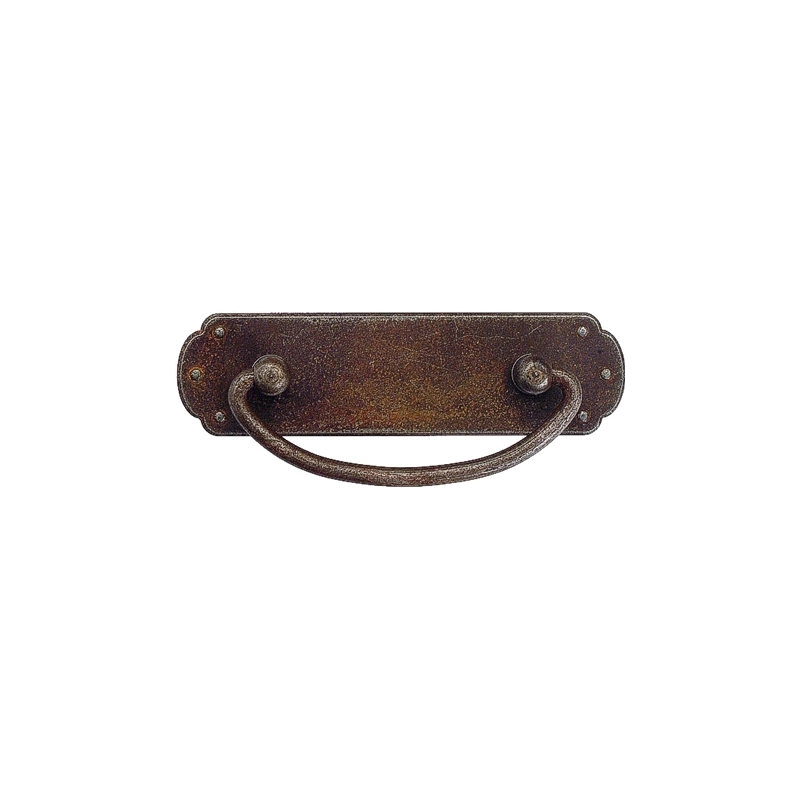 Maniglia in ferro. Finitura ferro antico. Dimensioni 110x43 mm.