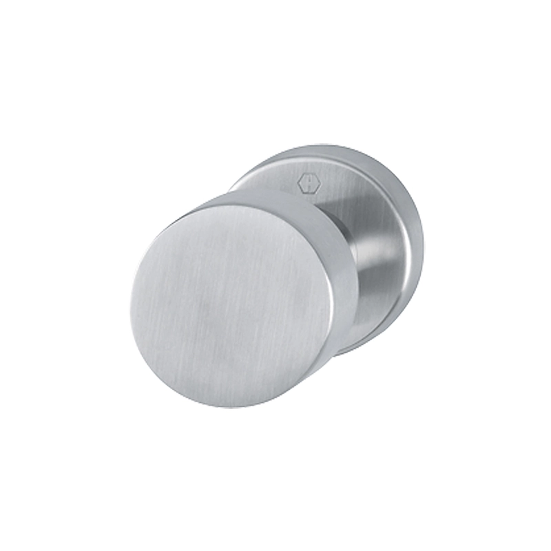 Pomolo fisso diametro 50 mm in acciaio inox con rosetta per porte d'ingresso, lato esterno. Finitura: F69 acciaio inox satinato.