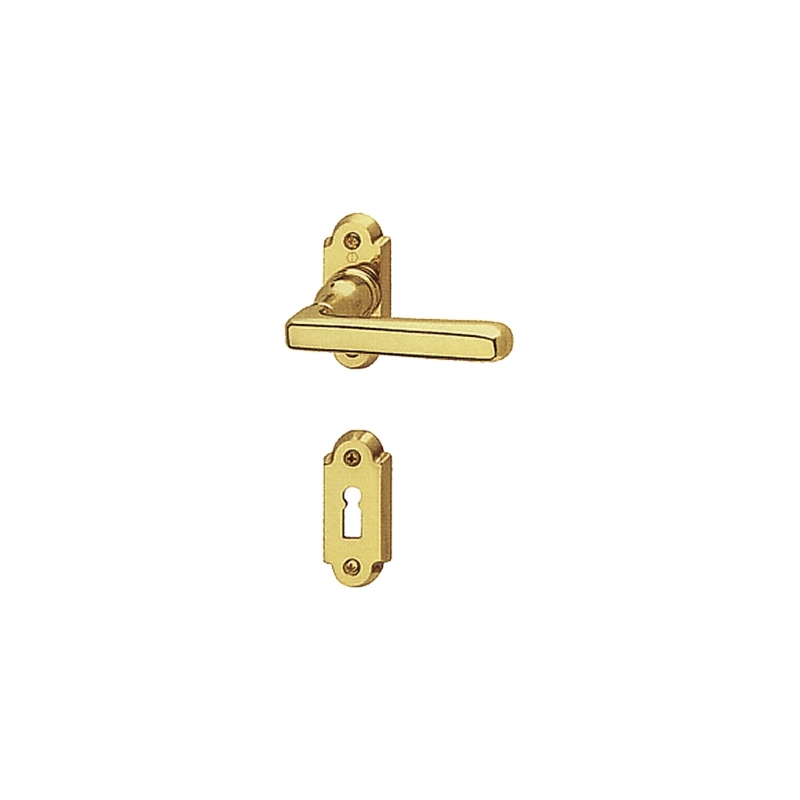 In ottone massiccio con molla di richiamo e quadro a profilo da mm.8, finitura ottone lucido. Modello = tipo foro chiave