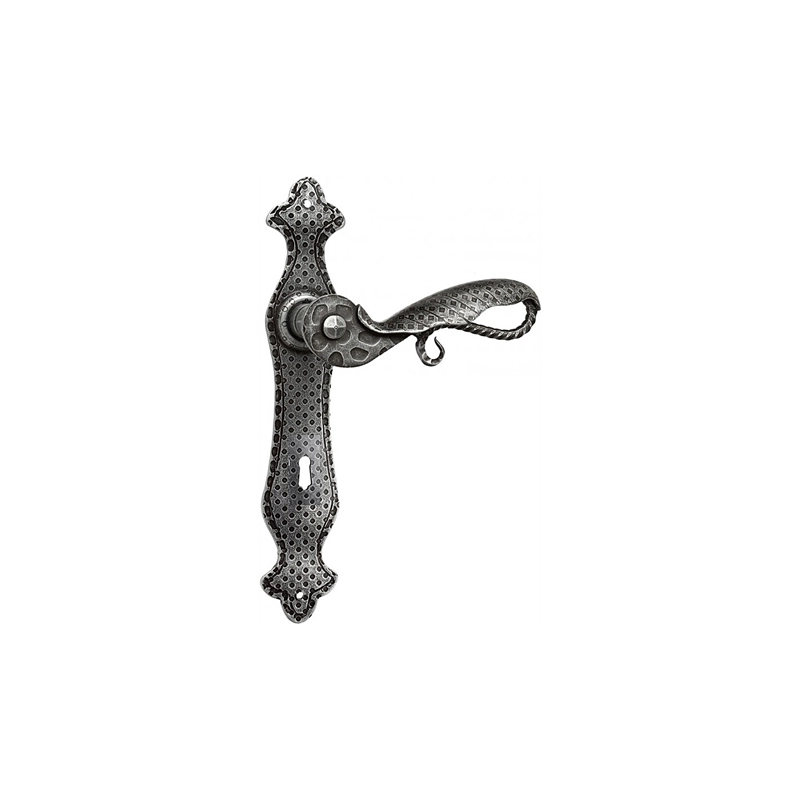 Maniglia con placca. Con molla di ritorno. Color argento. Modello = tipo foro