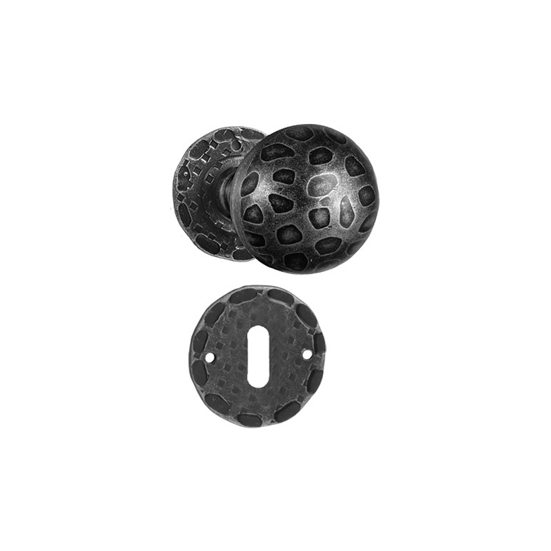 Coppia pomolo decentrato girevole con rosetta e bocchetta. Color argento. Modello = tipo foro