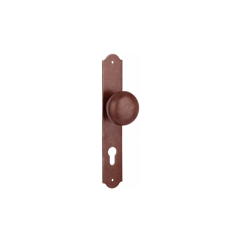 Pomolo fisso con placca. Color ruggine. Foro yale.