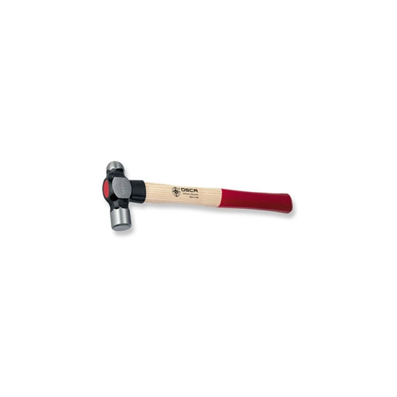 Martello a palla in acciaio C45. Battenti lucidati. Manico in legno frassino sagomato, con bussola in nylon salvamanico. Peso gr. 440